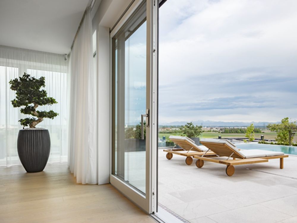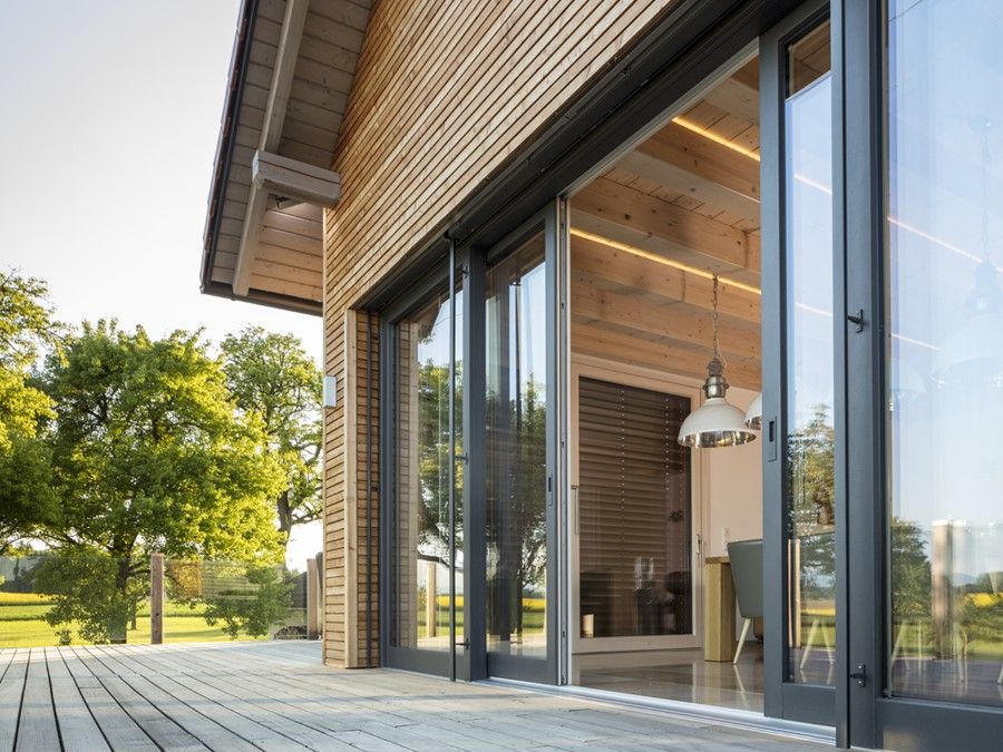 Auch als flächenbündiges Holz-Alu-Fenster zu erhalten.