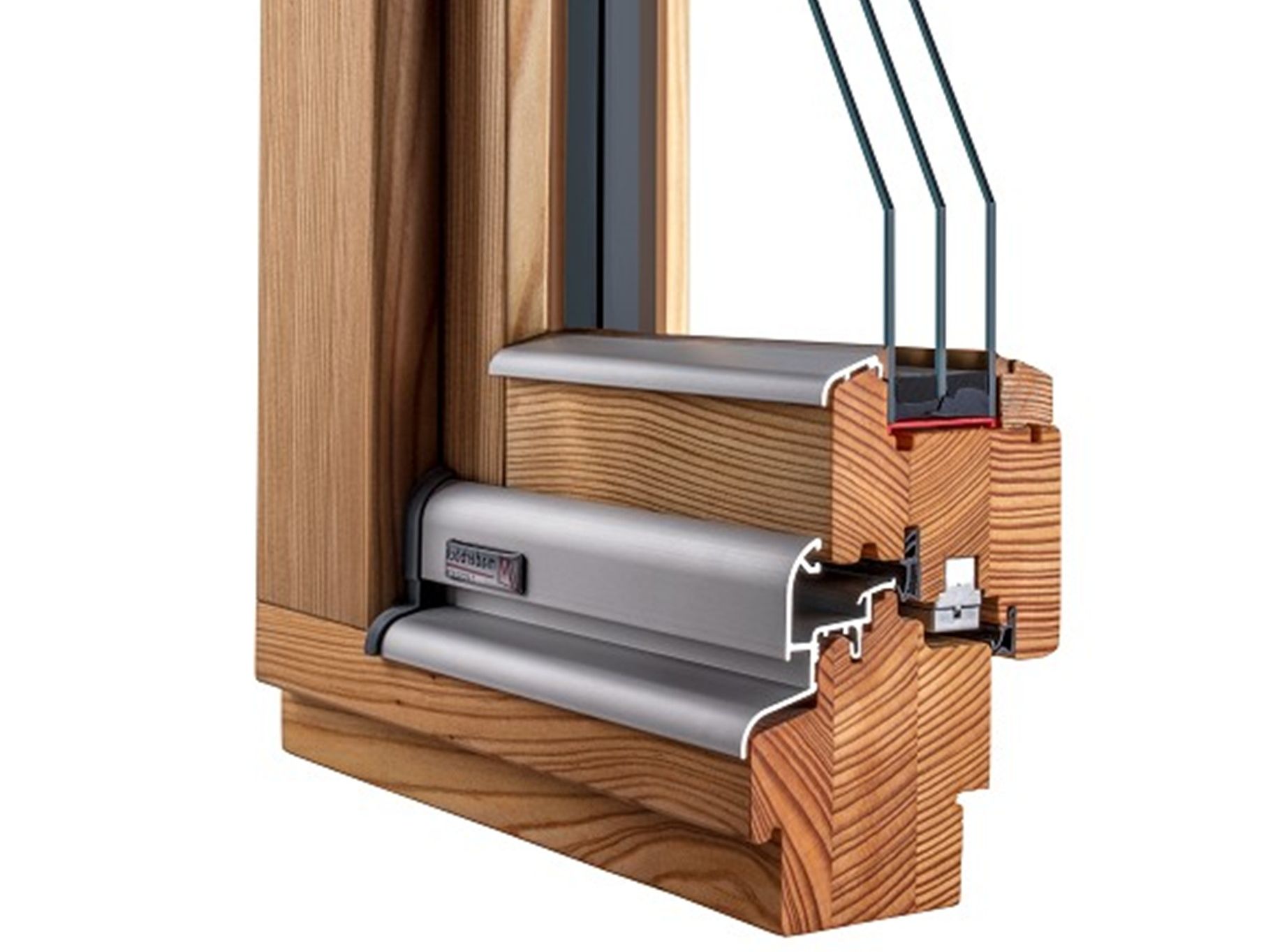 Mit thermischer Trennung zur Falzdichtung und vergrößerter Wasserablaufkammer durch Vorsetzen von Massivholz – kein Anfrieren der Dichtung!